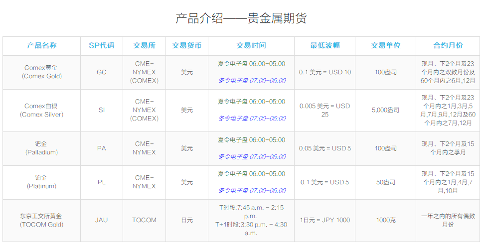 贵金属期货主要指金、银和铂族金属(钌、铑、钯、锇、铱、铂)等8种金属期货。主要交易品种的期货品种为黄金跟白银,黄金期货亦称“黄金期货合约”。以黄金为交易对象的期货合同。同一般的期货合约一样,黄金期货合约也载有交易单位、质量等级、期限、最后到期日、报价方式、交割方法、价格变动的最小幅度、每日价格变动的限度等内容。黄金期货合约按计量单位不同,一般可分为两种规格,以芝加哥谷物交易所为例,一种是重1000克、纯度为99. 5%的黄金期货,一种是重100金衡盎司、纯度为99. 5%的黄金期货。