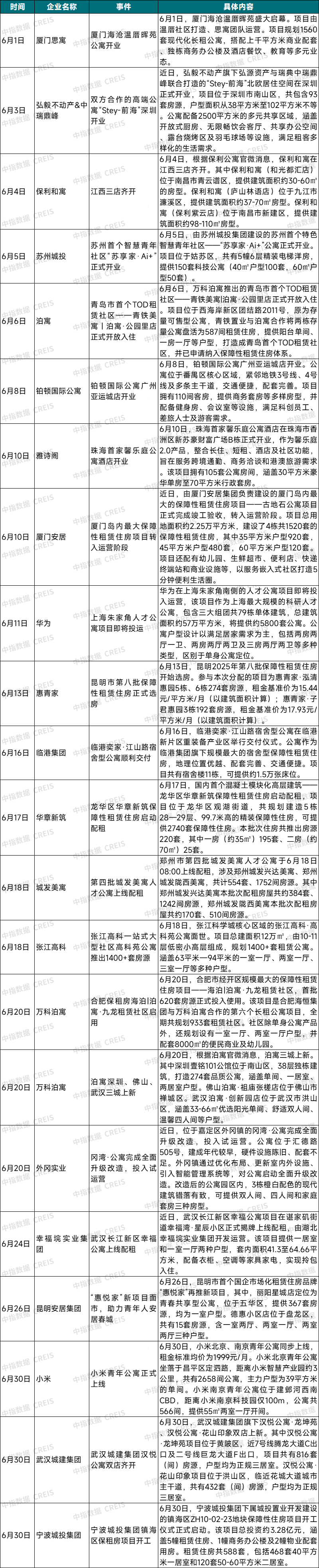 表:2025年6月住房租赁开发运营企业业务拓展动态